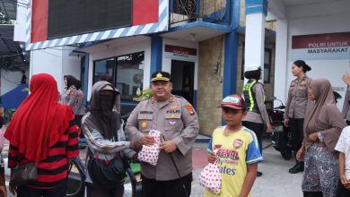 Kapolres Belitung Bersama Polwan Berbagi Takjil kepada Pengendara di Bundaran Satam
