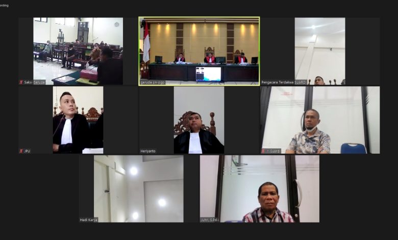 Dalam sidang tersebut Terdakwa Suardi Bin H Landreng dan Terdakwa Juhri SPd I Bin Larisa hadir dalam sidang melalui sarana video conference dengan aplikasi Zoom di Kejaksaan Negeri Belitung.