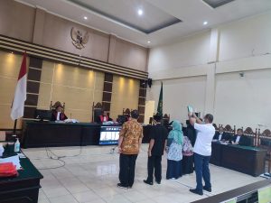 Sedangkan Majelis Hakim yaitu Hirmawan Agung Wicaksono SH MH (Hakim Ketua), Iwan Gunawan SH MH (Hakim Anggota) MHD Takdir SH MH (Hakim Anggota), Jaksa Penuntut Umum (JPU) Alfriwan Putra SH dan Michel Yudistira Lumban Gaol SH serta Penasihat Hukum Heriyanto SH MH, melaksanakan sidang secara langsung (offline) di Pengadilan Tindak Pidana Korupsi pada Pengadilan Negeri Kelas IA Pangkalpinang.