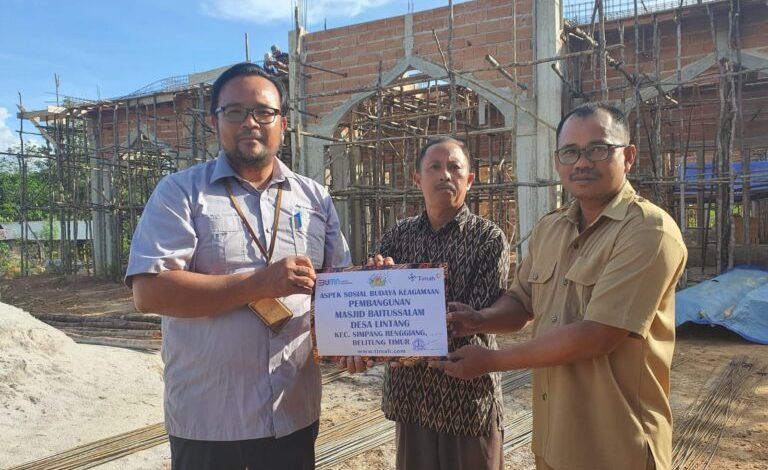 BELITUNG TIMUR, sendikatbabel.com– PT Timah Tbk kembali menyerahkan bantuan ke rumah ibadah di Kabupaten Belitung Timur. Jelang akhir tahun 2022 ini, PT Timah Tbk menyerahkan bantuan untuk pembangunan Masjid Baitussalam Desa Lintang, Kecamatan Simpang Renggiang, Belitung Timur.