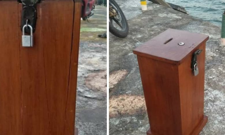 BELITUNG, sendikatbabel.com – Sebuah kotak mirip kotak amal ditemukan di Jerambah Kubu desa Air Saga, Kabupaten Belitung. Rabu (02/08/2023), kotak amal tersebut ditemukan anak-anak yang sedang berenang disekitaran Jerambah Kubu.