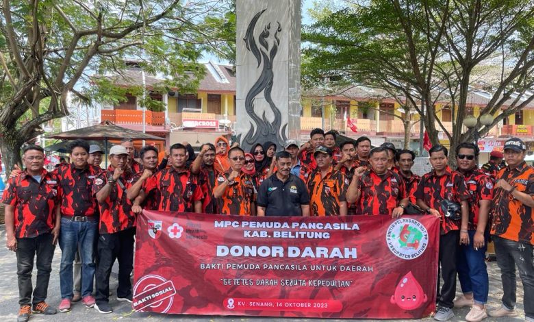 BELITUNG, sendikatbabel.com – Majelis Pimpinan Cabang Pemuda Pancasila (MPC) Kabupaten Belitung bekerjasama dengan Palang Merah Indonesia (PMI) Kabupaten Belitung menggelar aksi donor darah, Sabtu (14/10/2023).