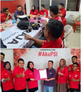BELITUNG, sendikatbabel.com – Pemilihan kepala daerah semakin marak dan bergema, hari ini, Selasa (14/05/24) pukul 10.30 wib, seorang pengusaha ternama di Belitung mengambil formulir pendaftaran di Sekretariat PSI, Dedy Hernandie yang akrab disapa Ationg kemudian langsung disambut dan diterima oleh Pengurus Partai.