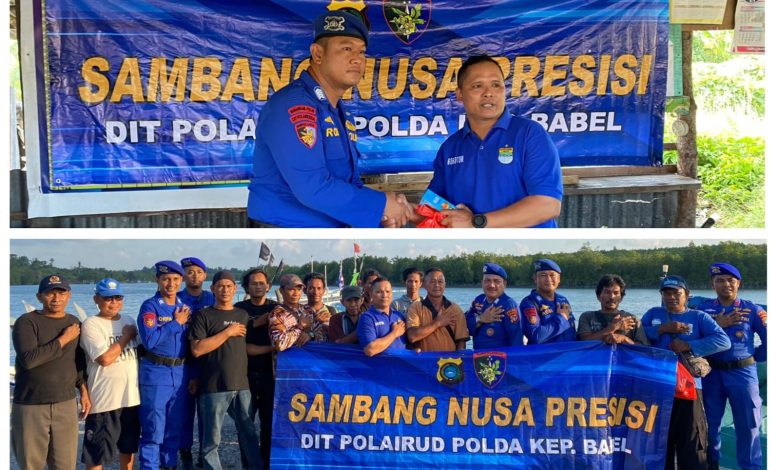 BELITUNG, sendikatbabel.com – Kegiatan Sambang Nusa Presisi adalah program unggulan dari Baharkam Polri yang dilaksanakan oleh Polairud Se Indonesia, Ditpolairud Polda Bebel sambangi Forum Nelayan Baro di Dermaga Baro (27/Juli/2024).
