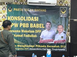 PANGKALPINANG, SENDIKATBABEL.COM – Menjelang Pendaftaran Pencalonan Gubernur dan Wakil Gubernur Propinsi Bangka Belitung, Dewan Pimpinan Wilayah Partai Bukan Bintang (DPW PBB) melakukan rapat konsolidasi jelang pendaftaran pilgub, Rabu (28/8/2024).