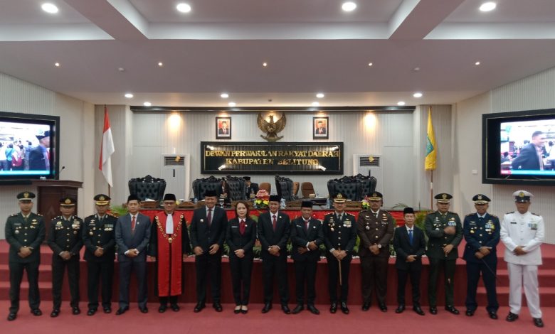 Pelantikan dan pengucapan sumpah pimpinan DPRD tesebut diatur UU Nomor 23/2014 pasal 165, bahwa pimpinan terpilih DPRD diresmikan oleh keputusan Gubernur sebelum memangku jabatannya, terlebih dahulu mengucapkan sumpah yang dipandu Ketua Pengadilan Negeri Tanjung Pandan, Dicky Cristian, disaksikan Pj Bupati Belitung Mikron Antariksa, unsur Forkopimda Kabupaten Belitung serta tamu undangan rapat paripurna DPRD Kabupaten Belitung.