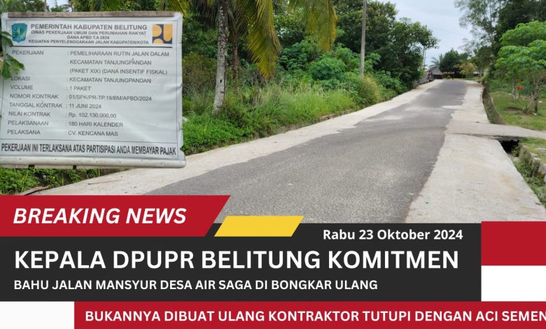 Secara pandangannya, pengerjaan bahu jalan yang berada dijalan Mansyur, Desa Air Saga, Kabupaten Belitung tersebut diduga kurang layak bahkan menurut dugaannya, komposisi pada mutu beton patut dipertanyakan.