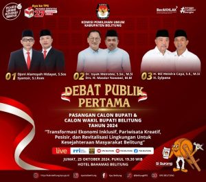 Ketua Bawaslu Belitung, Rezeki Aris Munazar, menekankan bahwa debat merupakan kesempatan penting bagi para pasangan calon untuk menyampaikan visi, misi, serta program mereka kepada masyarakat, sehingga harus dilaksanakan secara tertib dan sesuai dengan aturan yang berlaku.