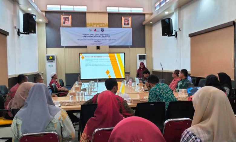 BANGKA SELATAN, SENDIKATBABEL.COM – Dalam rangka mendukung penyelenggaraan satu data Indonesia, Badan Pusat Statistik (BPS) menyelenggaran sosialisasi penguatan dan evaluasi penyelenggaraan satu data Bangka Selatan dalam satu Forum Satu Data Indonesia (SDI) Kabupaten Bangka Selatan di ruang rapat Kelapan Badan Perencanaan Pembangunan, Penelitian dan Pengembangan Daerah (Bappelitbangda) Bangka Selatan, Kamis (12/12/24).