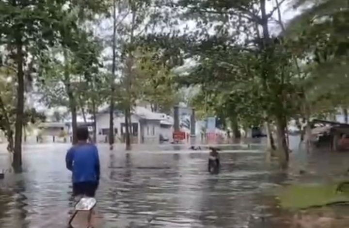 Dalam sebuah video unggahan di media sosial, seorang warga terlihat mengarungi air sambil mendokumentasikan kondisi tersebut. Video itu menampilkan suasana banjir dan angin kencang, dengan narasi perekam yang mengingatkan warga lain untuk berhati-hati.