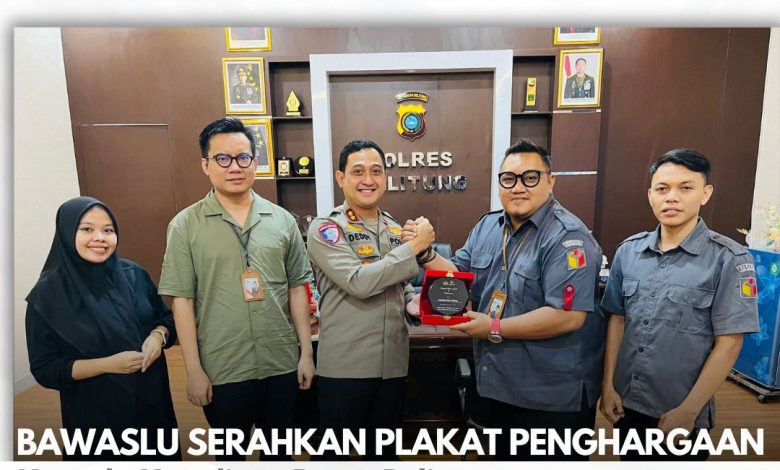 BELITUNG, SENDIKATBABEL.COM – Bawaslu Kabupaten Belitung melakukan kunjungan silaturahmi sekaligus memberikan plakat penghargaan kepada Kepolisian Resor Belitung yang telah berkontribusi dalam menyukseskan pengawasan Pilkada Serentak Tahun 2024, Senin (20/01/25).