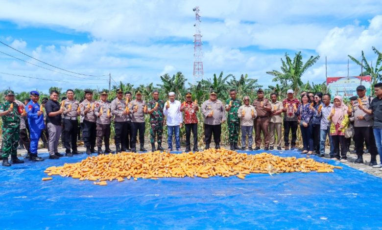 MEMBALONG, SENDIKATBABEL.COM – Dalam rangka mendukung program nasional Swasembada Ketahanan Pangan 2025, Polres Belitung bersama Polsek Membalong melaksanakan kegiatan Panen Jagung Serentak 1 Juta Hektar, Kamis 5 Juni 2025.
