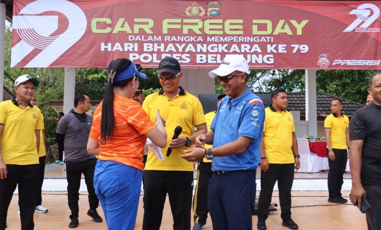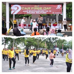 BELITUNG, SENDIKATBABEL.COM – Dalam rangka menyambut Hari Bhayangkara ke-79, Polres Belitung menggelar kegiatan Car Free Day (CFD) dengan tema “POLRI UNTUK MASYARAKAT” yang berlangsung meriah pada Minggu pagi, 22 Juni 2025