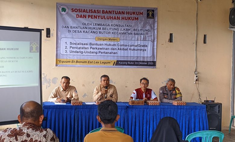 BELITUNG, SENDIKATBABEL.COM – Lembaga Konsultasi dan Bantuan Hukum (LKBH) Belitung kembali melaksanakan kegiatan Sosialisasi Bantuan Hukum dan Penyuluhan Hukum, dan kali ini dilaksanakan di Desa Kacang Butor, Kecamatan Badau, Kabupaten Belitung. Pada Jum’at (3/10/2025).