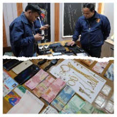Dari tangan pelaku, polisi berhasil mengamankan sejumlah barang bukti berupa uang tunai dan berbagai perhiasan emas yang diduga hasil kejahatan, di antaranya cincin, gelang, kalung, serta liontin. Selain itu, turut diamankan beberapa unit handphone, jam tangan, dompet, kartu perbankan, hingga tas milik korban. Total kerugian korban diperkirakan mencapai Rp80 juta.
